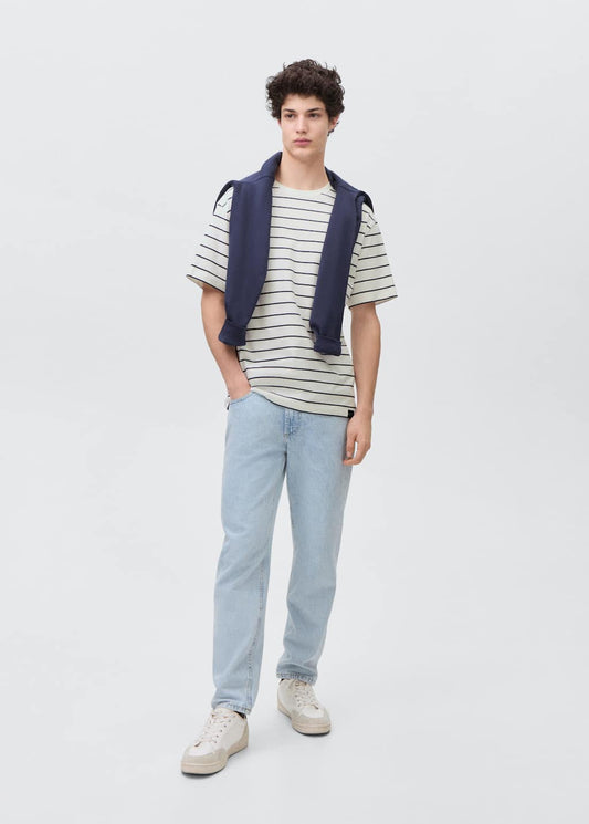 MANGO TEEN - Striped short-sleeved t-shirt off white - L - Teenage boy