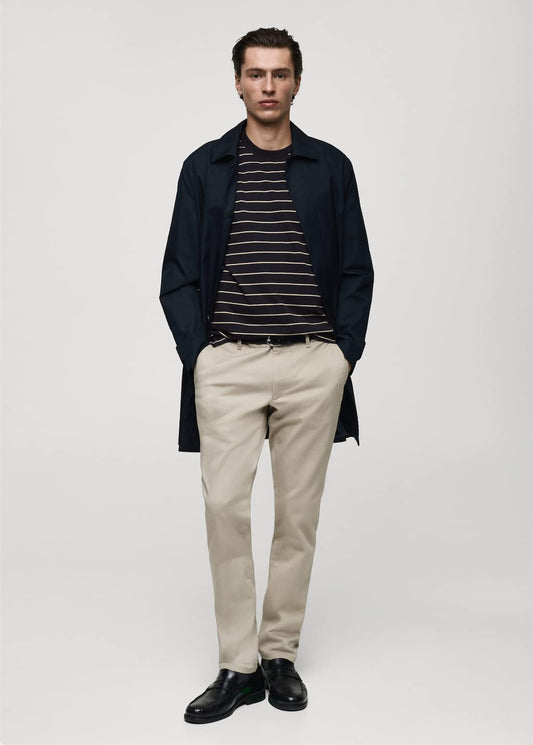 MANGO MAN - 100% cotton striped t-shirt dark navy - S - Man