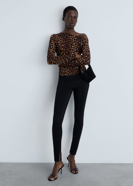 MANGO - Asymmetrical neck leopard t-shirt brown - XS - Woman
