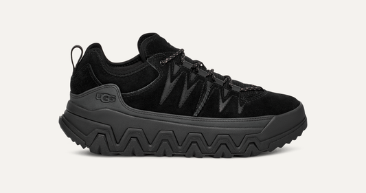 UGG® Women's CapTrail Low Suede/Textile/Recycled Materials Sneakers in Black, Size 7.5