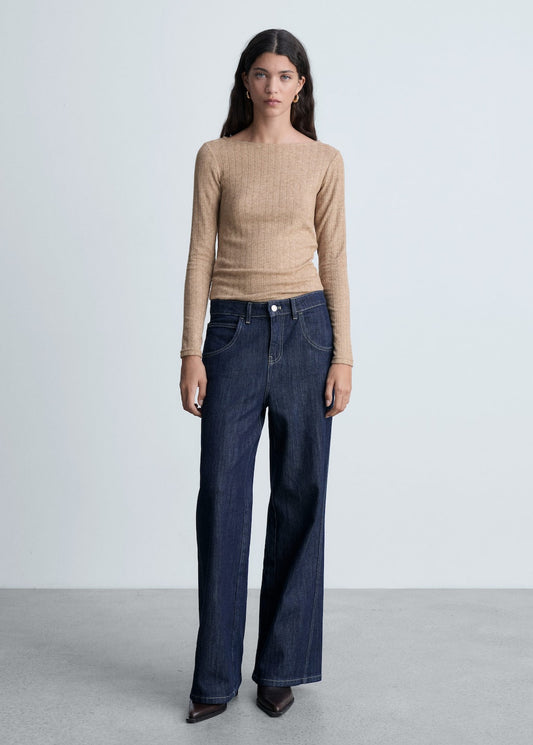 MANGO - Long-sleeved pointelle t-shirt light/pastel brown - XXS - Woman