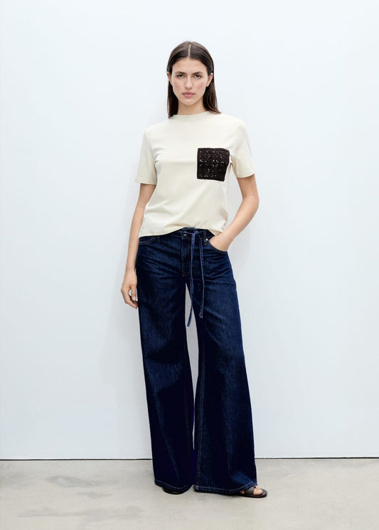 MANGO - Crochet-embroidered t-shirt beige - XS - Woman