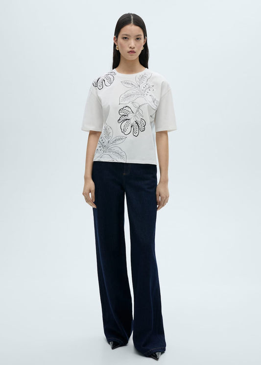 MANGO - Floral-print cotton t-shirt off white - M - Woman