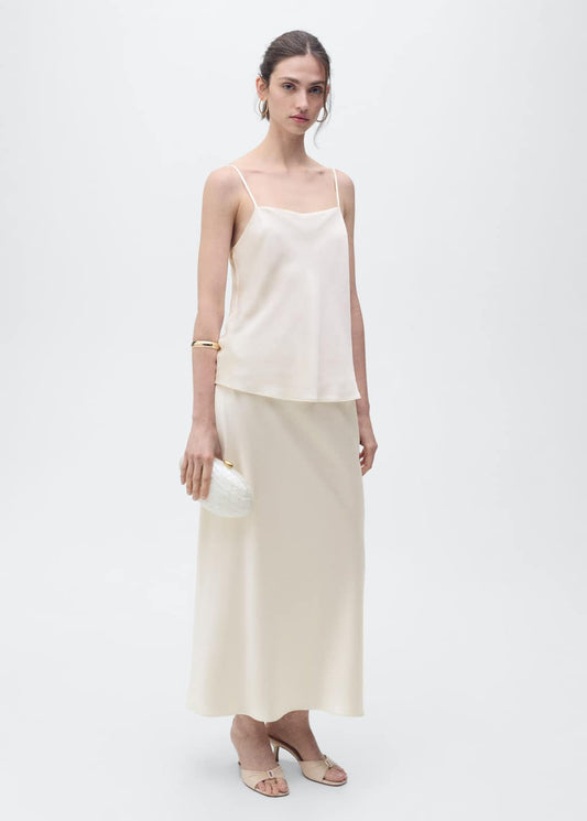MANGO - Satin top with thin straps wine - S - Woman